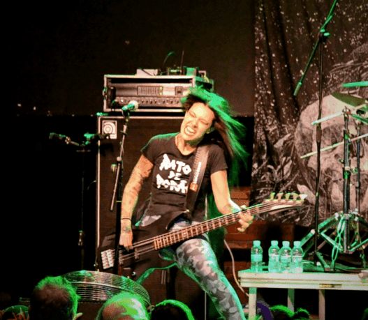 Sale la banda donde Fernanda Lira con un ventilador enfocado comienza a tocar su bajo y a cantar. Sus temas de puro thrash old school, cortos, intensos, y sonido arrollador hace que su actuación se te quede corta.