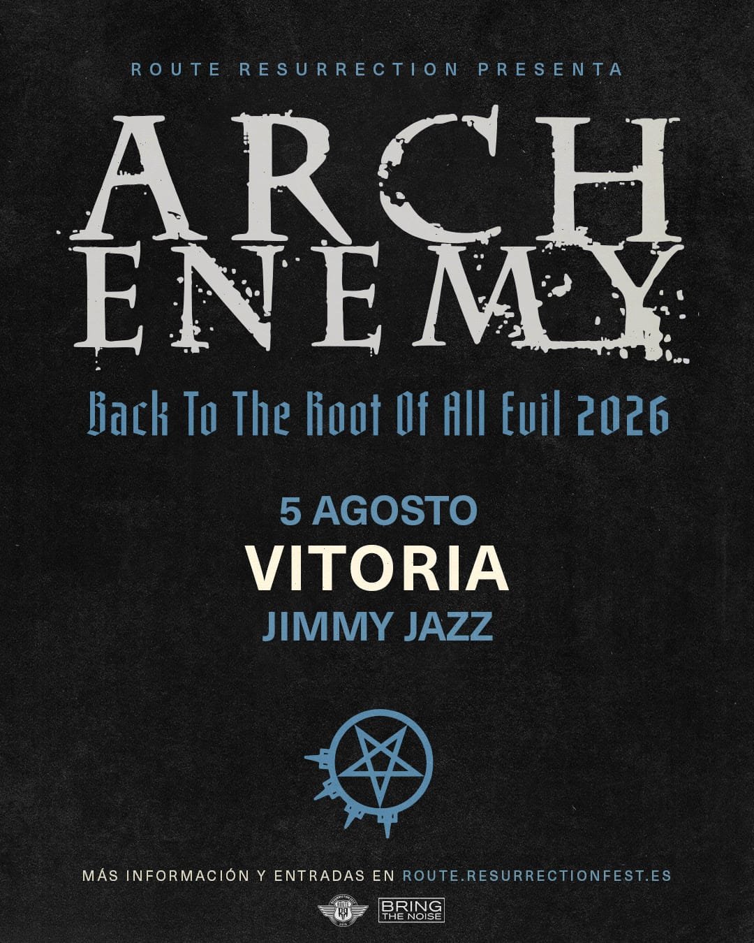 Vitoria-Gasteiz acogerá uno de los acontecimientos más especiales del año para los amantes del metal. Los gigantes del melodic death metal, Arch Enemy, han elegido España para una parada única dentro de su nueva gira por recintos selectos y de pequeño formato en Europa. La fecha señalada será el 5 de agosto de 2026 en la emblemática sala Jimmy Jazz.